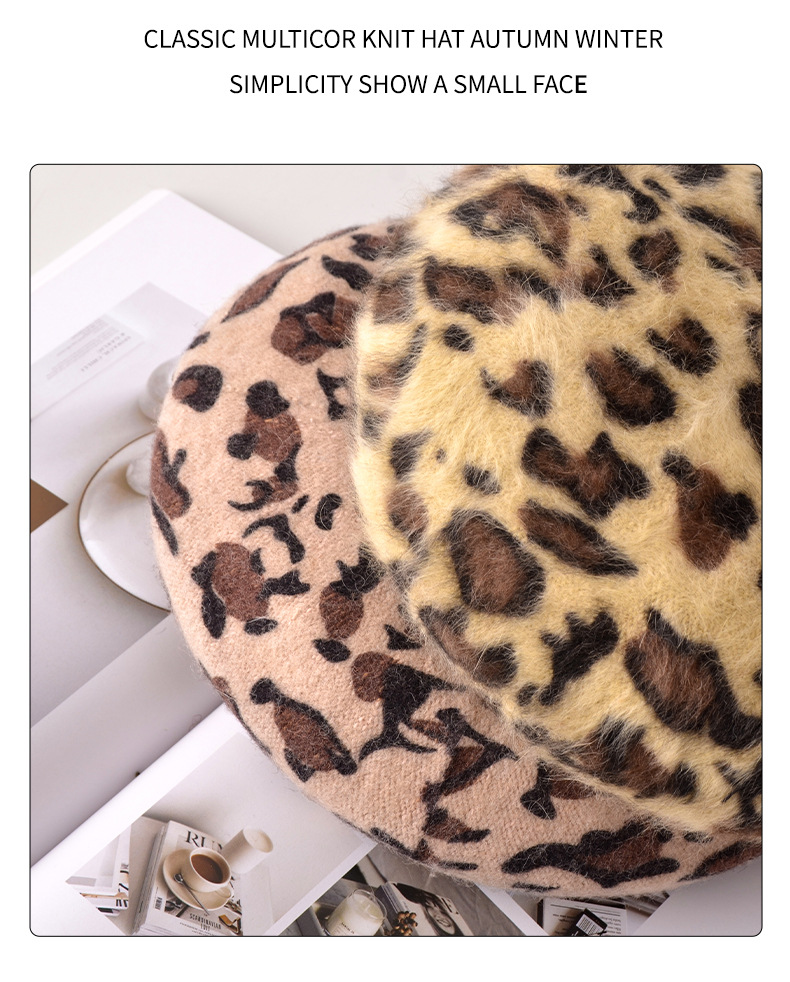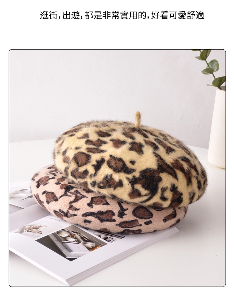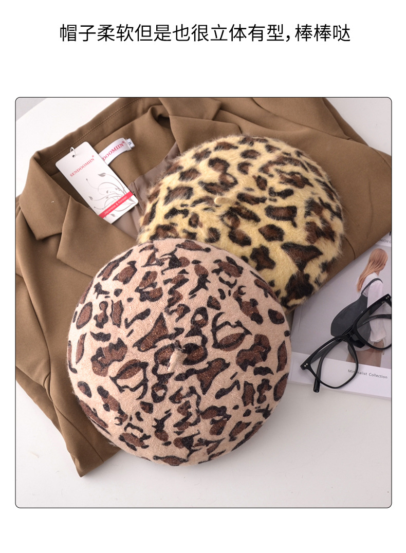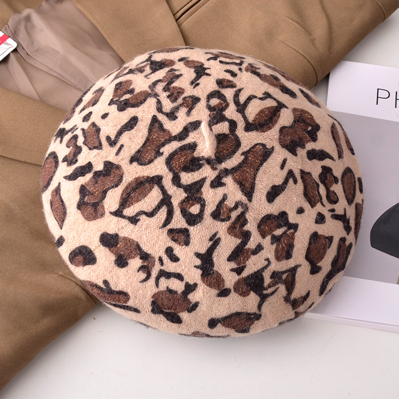 Autumn/Winter Women's Hats New Leopard Print Beret Wool Painter Hat Mushroom Hat Wholesale