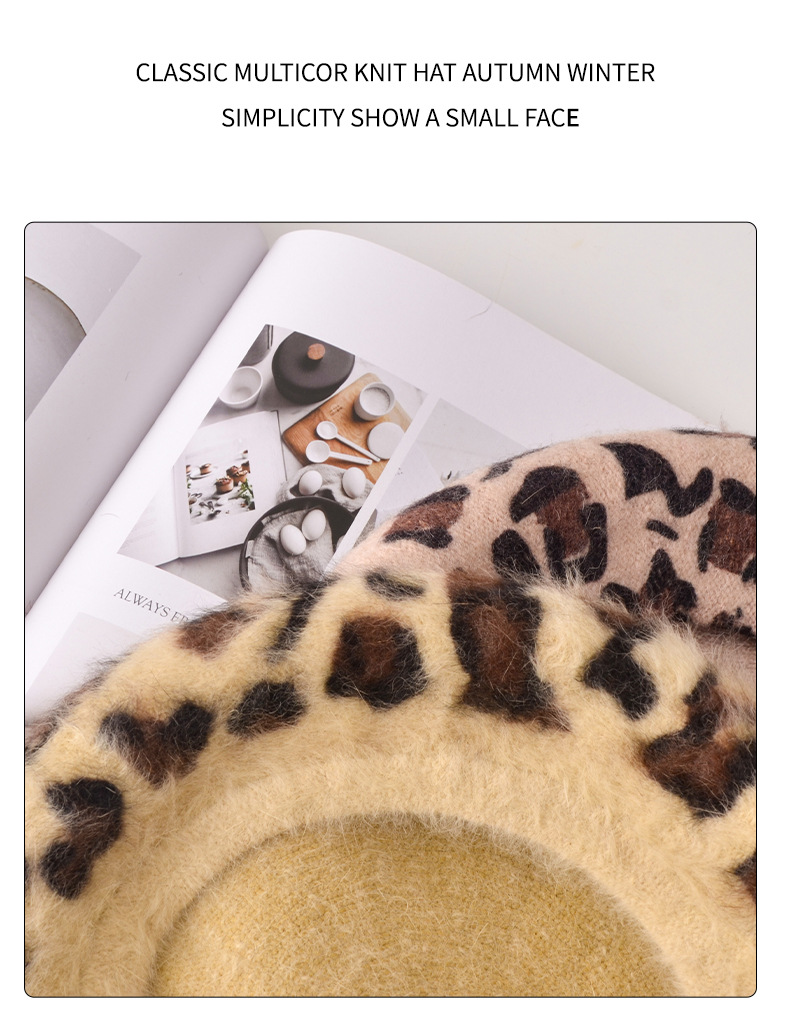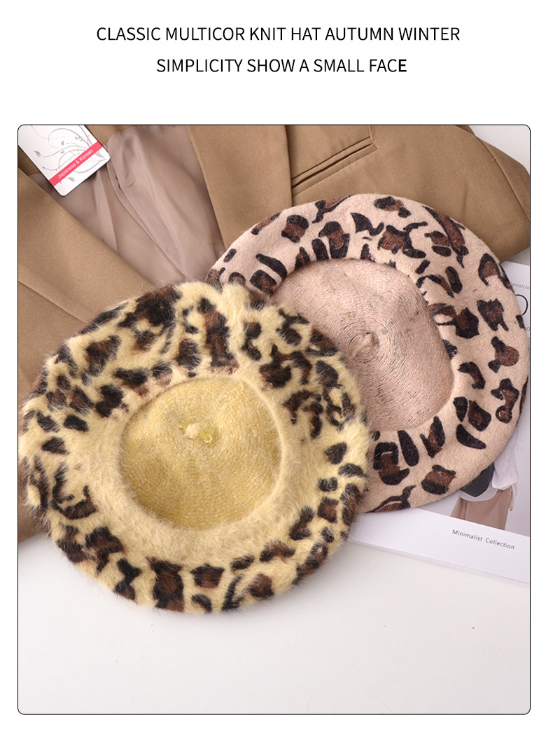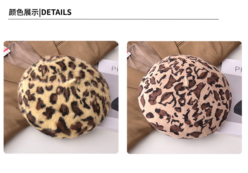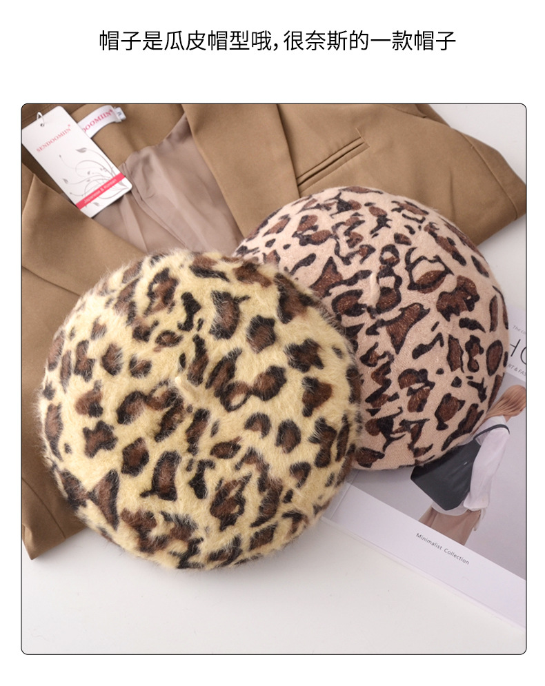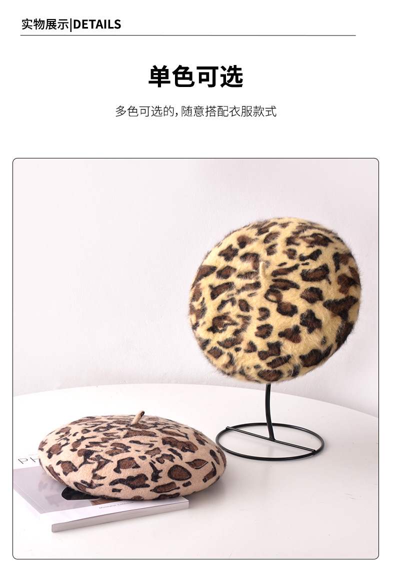 Autumn/Winter Women's Hats New Leopard Print Beret Wool Painter Hat Mushroom Hat Wholesale