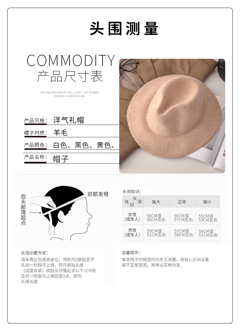 New Autumn And Winter Top Hat Female Fashion Lady Wind Concave Hat British Big Overhang Retro Hat Jazz Wholesale